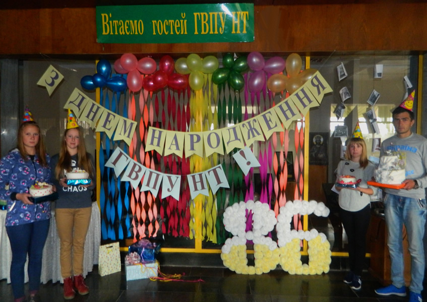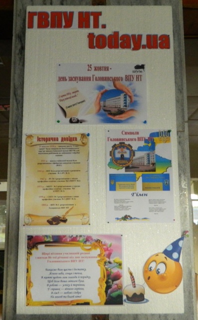 25 жовтня – день народження Головинського ВПУ НТ. Творча група педпрацівників разом з активістами учнівського самоврядування в цей день святково оформили фойє навчального корпусу. Різнокольорові кульки, паперові гірлянди, подарунки, вітальні листівки та фото – все це стало головними атрибутами святкового дійства.