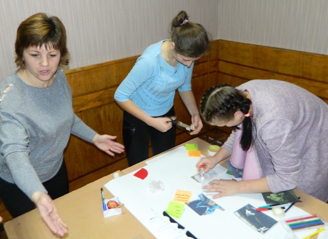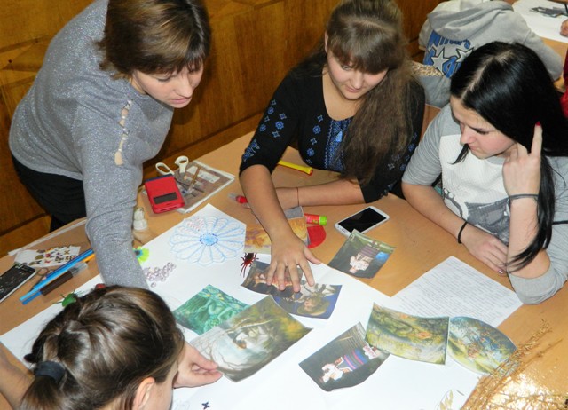 Сучасна професія вчителя трактується як хелперська професія, що означає «навчати, допомагаючи». Саме так навчались члени гуртка «Рідне слово» під час практичного заняття, виготовляючи літературний освітній продукт за технікою «Скрапбук». Об’єднавшись у чотири малі групи за літературними творами «Земля» О.Кобилянської, «Тигролови» І.Багряного, «Лісова пісня» Л.Українки, «Тіні забутих предків» М.Коцюбинського, гуртківці дружно, творчо, із захопленням працювали над створенням скрапбуків. Ще цікавішими були виступи представників малих груп, які вміло презентували результати створених робіт, охоче розповідали про найдрібніші деталі подій у творах. За відгуками учасників заняття, така форма роботи дає змогу чітко орієнтуватися у змісті твору, відчути себе успішними, самостійними, впевненими, креативними.