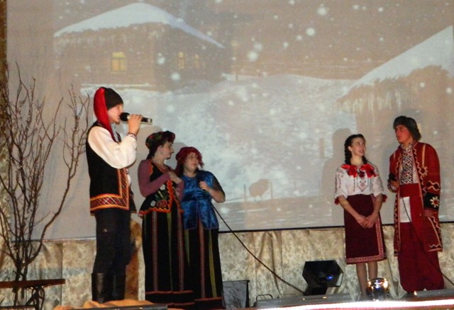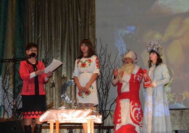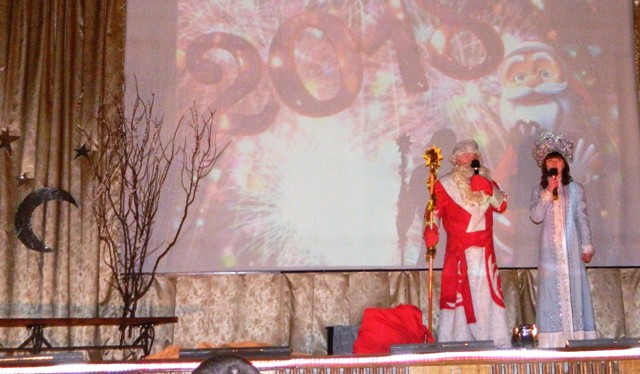 Присутніх у залі з прийдешнім Новим роком привітали Дід Мороз та Снігуронька.