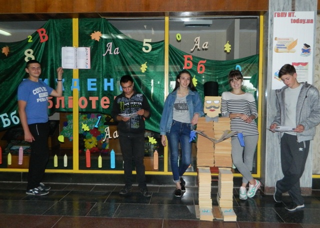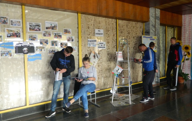 В період з 25 по 29 вересня в ГВПУ НТ проходив Тиждень бібліотеки під гаслом «Там, де живуть книги». В рамках Тижня було організовано та проведено ряд заходів. У фойє навчального корпусу протягом Тижня всіх зустрічав імпровізований книжковий бібліотекар, з яким залюбки фотографувалися учні та працівники. Поряд розгорнулася фотосушка «В об’єктиві - бібліотека» та прес-калейдоскоп «Сторінками газет та журналів».