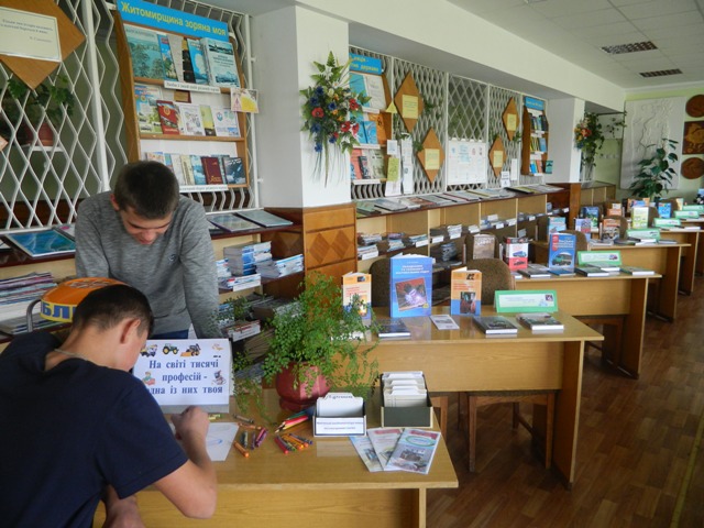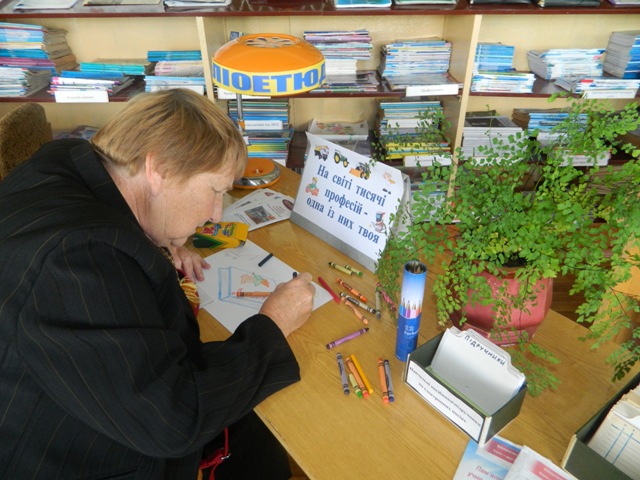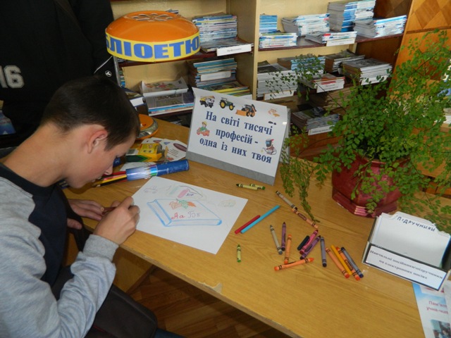 В перший день Тижня в бібліотеці був проведений день відкритих дверей та організована розгорнута викладка фахової літератури. Відвідувачі різних професій створили бібліотечний етюд «На світі тисячі професій – одна із них твоя», залишивши на папері невеличкий малюнок.