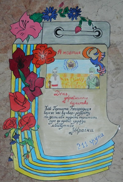 З нагоди історичних та народних свят, з метою національно-патріотичного виховання молоді в училищі в період з 09 по 13 жовтня було проведено Тиждень козацької слави. У фойє навчального корпусу бібліотекарем училища був оформлений інформаційний стенд «14 жовтня. День в історії України», члени Учнівської ради разом з педагогом-координатором оформили фотозону з елементами народного вжитку, керівники навчальних груп організували конкурс учнівських плакатів та стіннівок.