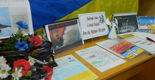 3 24 січня по 2 лютого в навчальному закладі проведено тематичну лінійку «Моя суверенна Україна», переглянуто документальний фільм «День незалежності. Григорій Пипський», присвячений Героям Крут, в бібліотеці училища оформлено виставку-реквієм «Пам’ятний січень в історії України. 100 років бою під Крутами». Учасники гуртка народної творчості «Берегиня» представили свої роботи «Соборність і злагода – умови процвітання України» та «Пам’ятаємо про Крути». Учні училища взяли участь у написанні конкурсних творчих робіт на тему: «Яким я бачу майбутнє моєї держави».