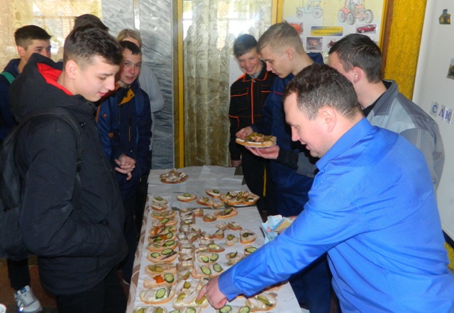 У фойє навчального корпусу учні та працівники училища мали змогу подивитися майстер-клас з приготування польових бутербродів механізатора та посмакувати ними.