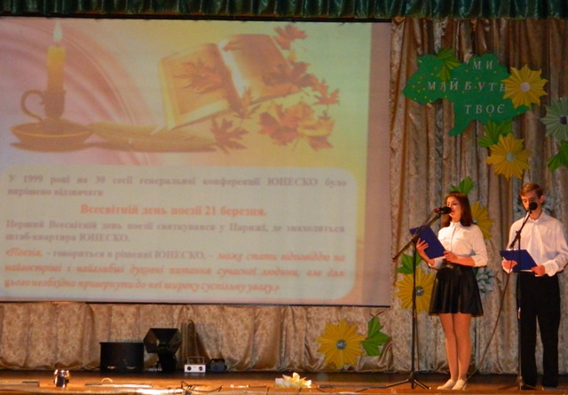 Тарас Шевченко і Леся Українка, Олександр Олесь і Андрій Малишко, Василь Симоненко і Василь Стус, Сергій Жадан і Ліна Костенко… - ці імена входять в наше життя з дитинства і залишаються з нами назавжди. В поезії кожний знаходить в них щось своє, близьке і зрозуміле. Духовно бідною залишається та людина, якій байдуже поетичне слово.