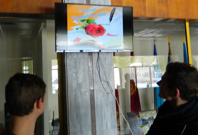 А у фойє навчального корпусу учні та працівники училища мали змогу переглянути відеоролик до Дня поезії.