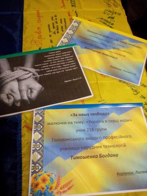 Перед святом учні писали побажання військовослужбовцям на прапорі України, який буде передано воїнам на Схід, а малюнки учнів на тему «За нашу свободу» та поезія (вірші) на тему «Листи на фронт», підготовлені учнями заздалегідь, також будуть передані військовим 95 ДШБ.