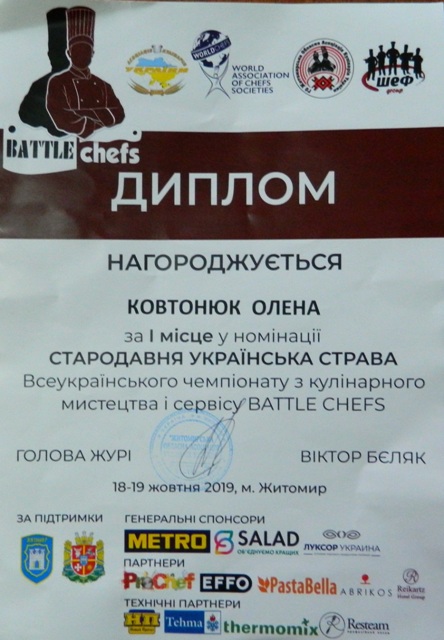 У номінації «Стародавня українська кухня» (практичні змагання) Ковтонюк Олена посіла І місце та отримала золоту медаль. Бордюг Людмила посіла ІІІ місце у номінації «Традиційний хліб» (АРТ- клас) та отримала бронзову медаль.