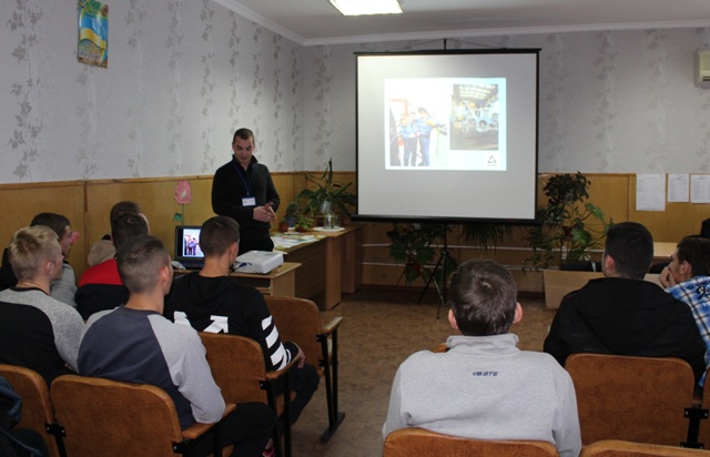 У листопаді цього ж року представники ТОВ «Укрпрофігруп»зустрілися із випускниками групи 309 з професії Електрогазозварник вже на базі Головинського ВПУ НТ.