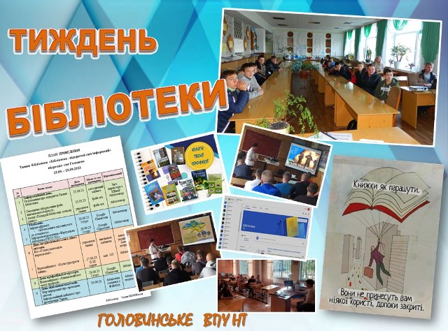 У період з 25 по 29 вересня 2023року у Головинському ВПУ НТ відбувалися заходи у рамках Тижня бібліотеки. Дійства проходили як в очному так і у дистанційному форматі.
