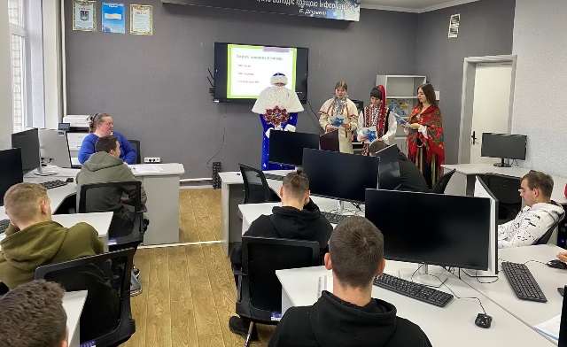 Творча група ГВПУ НТ привітала колектив училища з прийдешніми святами, провели цікаву вікторину та пригостили смаколиками. Щирі вітання та найкращі побажання лунали з вуст учасників вертепу працівникам та здобувачам освіти училища.