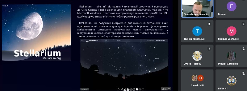 З програмним середовищем STELLARIUM як засобом розвитку дослідницької компетентності ознайомив викладач фізики і астрономії Сергій НЕСТЕРЧУК.