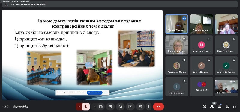 Досвідом роботи щодо використання цифрових інструментів при вивченні складних тем з історії, які мають різні інтерпретації в суспільстві поділився викладач історії Руслан САМЧЕНКО.