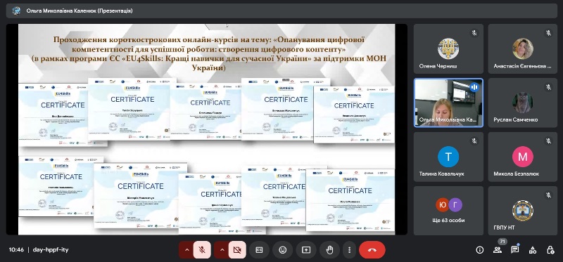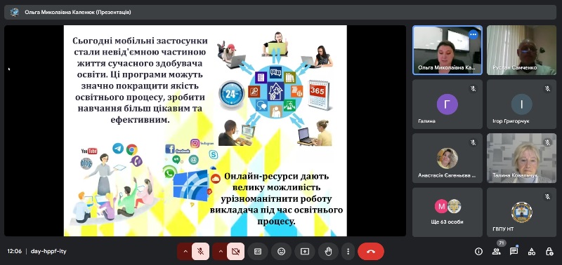 Яна ДАНИЛІВСЬКА, заступник директора з навчально-методичної роботи Головинського ВПУ НТ виступила на тему: «Цифрові дидактичні ресурси – обличчя методичного середовища, центром якого є сучасний викладач з високим рівнем сформованості предметно-методичних компетентностей».
