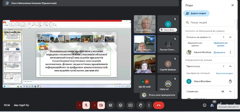 30.10.2024р. на базі Головинського ВПУ НТ відбулося інтегроване онлайн-засідання обласної методичної секції викладачів предметів гуманітарної підготовки; викладачів математики, фізики; педагогічних працівників інформаційних та цифрових компетентностей на тему: «Трансформація ключових аспектів навчання шляхом організації системної роботи цифрової лабораторії закладу: вплив цифрових рішень на збагачення творчої креативності педагога, підвищення мотивації здобувачів освіти».
