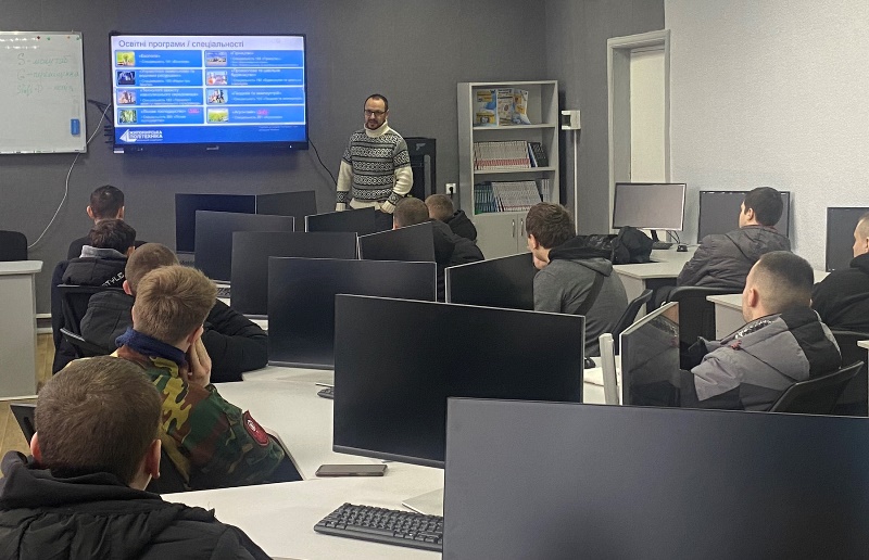 профорієнтаційна зустріч з представниками Житомирської політехніки Шлапаком В.О. та Башинським С.І. (викладач Ломако А.А., 504, 506, 601, 603);