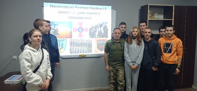 Викладач Єль Г.М. розпочав Тиждень з уроку-презентації: «Національна безпека України, її захист – справа кожного громадянина», де здобувачі освіти знайшли відповіді на питання: «Чи потрібна державі армія? Для чого? Хто повинен захищати свою землю, своїх рідних від ворога? Що таке патріотизм?» та багато інших.